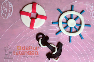 Another fondant cake from Dapur Tetangga. Tema navy dipilih oleh kakak Mihra menyesuaikan dengan profesi sang suami.